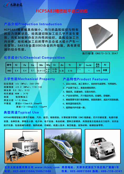 HCP5A83精密铝板对杂质、碱金属元素和低熔点元素的严格控制提高了合金的耐蚀性和抗蠕变能力,板材两面经过铣磨加工呈现出超平精细表面,尺寸公差标准全球领先,出厂全检,可双面贴膜保护,强度超过欧洲同类产品,厚度规格覆盖率高(≥4.5mm)。