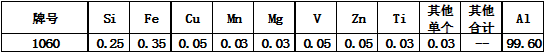 产品介绍 1060铝板含铝量达99.6%,又被称为纯铝板,1060铝板具有良好的延伸率以及抗拉强度,完全能够满足常规的加工要求(冲压,拉伸)成型性高,1060热轧铝板被广泛应用于母线、灯具、标牌、幕墙、保温等领域;而1060热轧料0.1mm厚度的铝板卷则被应用于汽车配件中(如:动力电池软连接)。